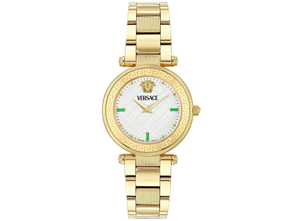 Detailně zpracovaná pouzdra z nerezové a pozlacené oceli poskytují tu nejelegantnější ochranu pro švýcarský strojek, který tyto hodinky pohání. Kožené a ocelové pásky jsou vždy vyrobeny z těch nejkvalitnějších materiálů, aby zajistily pohodlné nošení za každých podmínek. Oslnivé a úspěšné dědictví společnosti Versace tak přináší půlstoletí s poutavým sortimentem té nejvyšší kvality.
